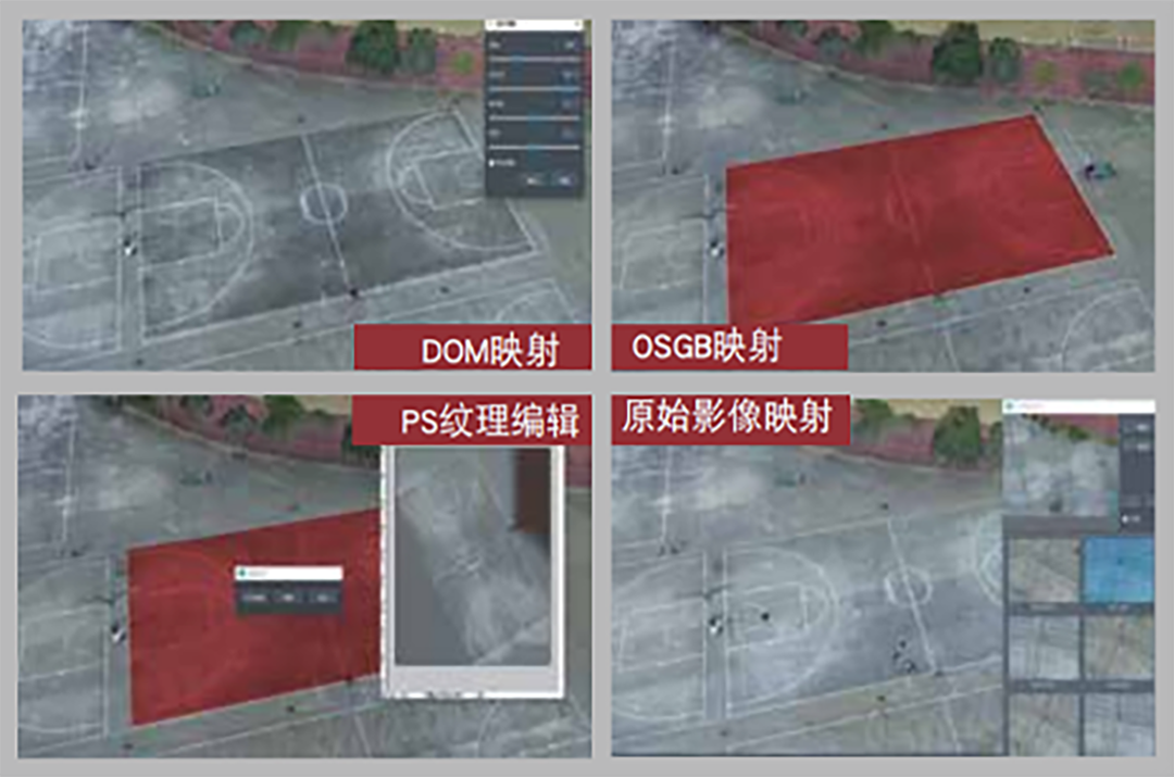 纹理映射:支持由原始影像映射、DOM映射、OSGB映射,支持PS纹理编辑。