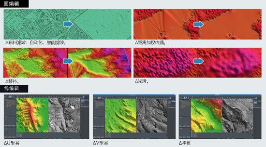• ▷ 精细化编辑。使用系统提供的丰富的地形编辑工具,对地形数据进行指定高程、升降、光滑等编辑处理。
